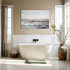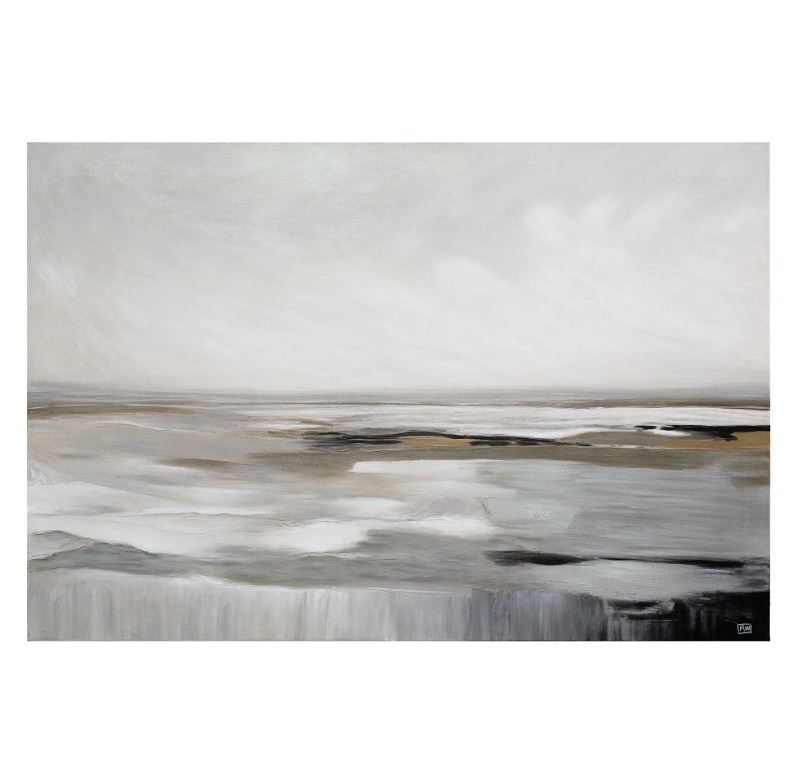 Designed with large-scale impact in mind, this generously proportioned canvas art will add interest and style to your interior design project. Hand painted in neutral hues and using plenty of texture, this landscape piece is just the thing for leaving a lasting impression in any space.