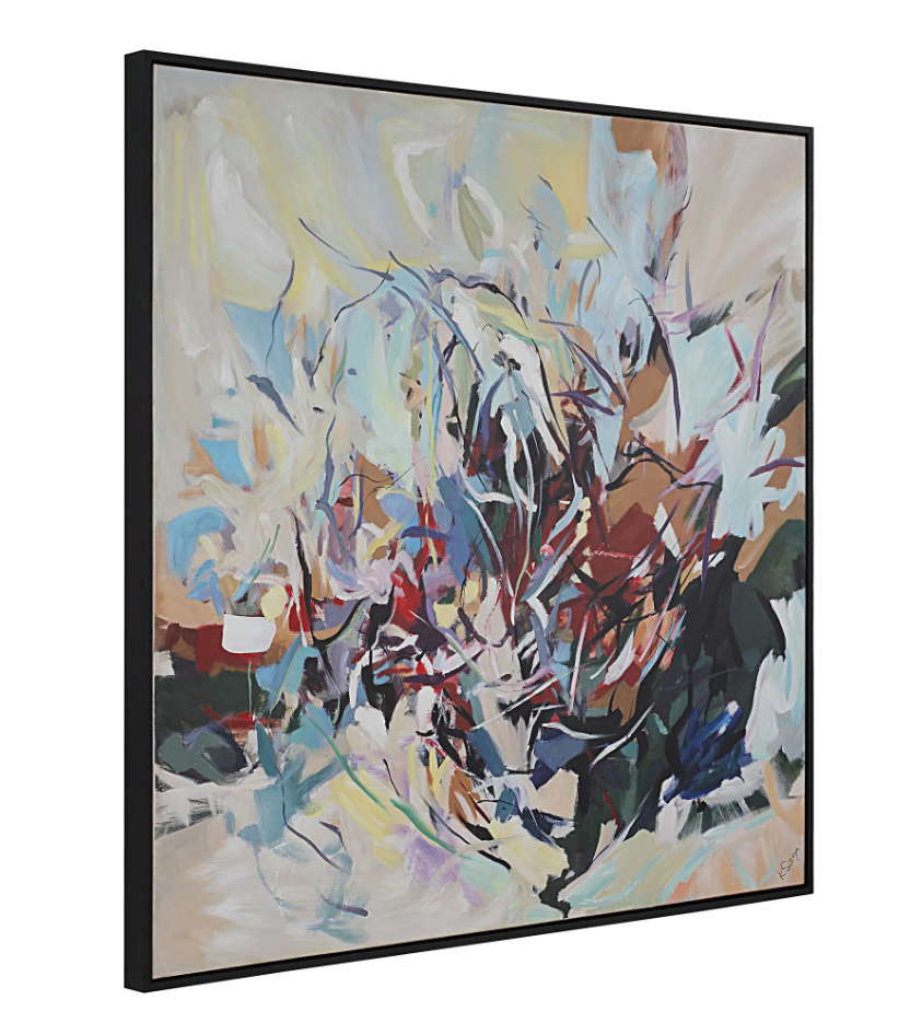 Texture and color come alive in a beautiful display of brushstrokes to bring a fresh update to any space. Iman is hand-painted for an artisanal touch, this high-quality cotton canvas art features a matte black frame that adds bold contrast in your interior decorating project. Hang it anywhere you want to create a memorable impact.