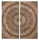 The hand pieced and burnished wood chips of the Lanciano Wall Panel set, when used together, create this stylish organic wall art of concentric circles. These rings represent processes, interrelationships, wholeness, systemic view of nature and universe OR they are just calming to look at. Priced and sold as a set of 2.