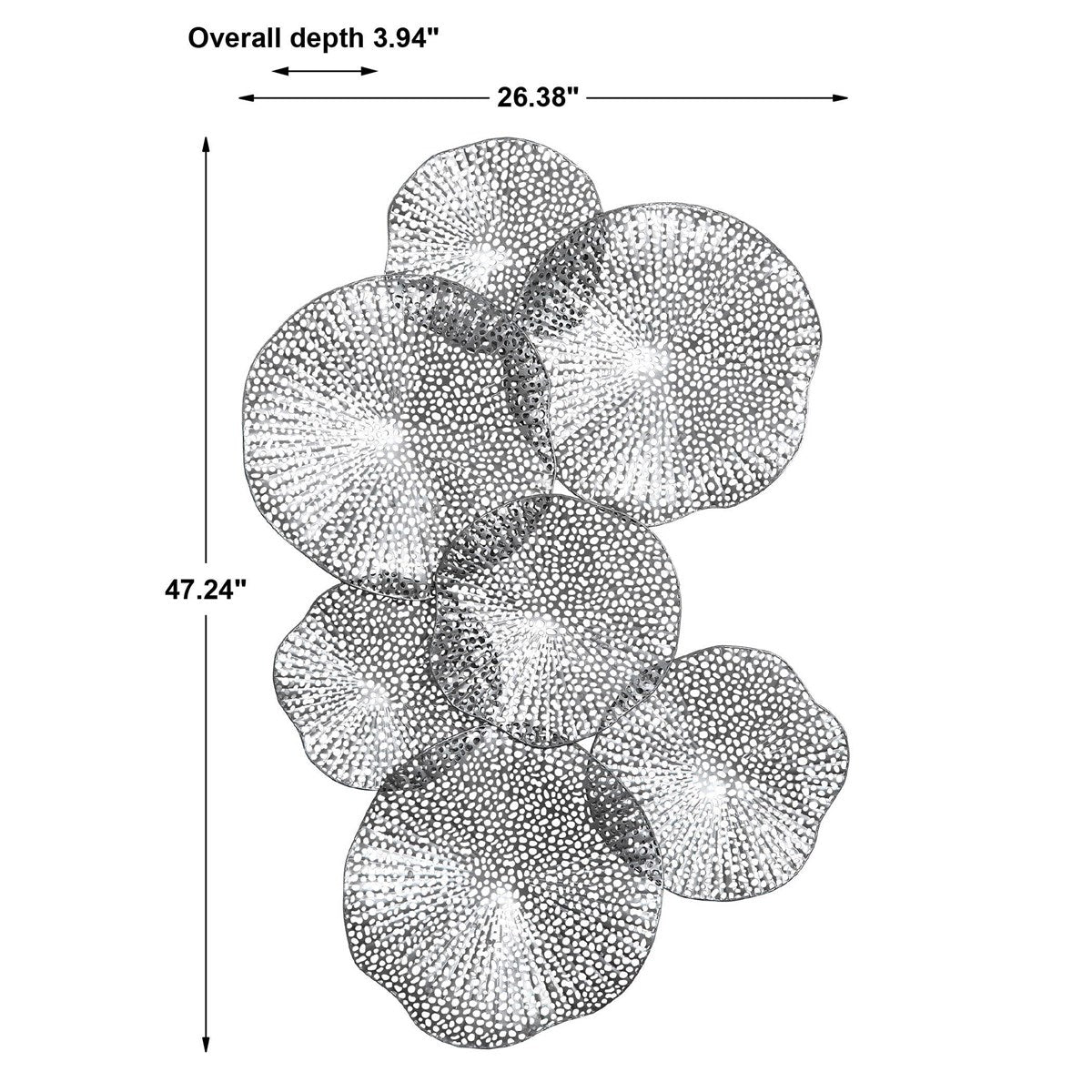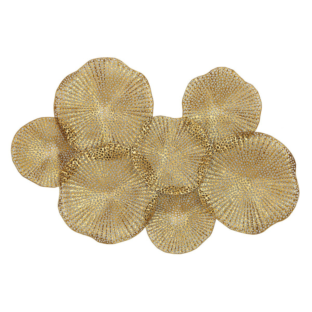 Resembling layered lotus leaves, the pierced Ripley metal Wall Art is finished in 3 metallic tones of lightly antiqued gold, bronze or pewter. Holes in each petal allow wall to be seen. May be hung horizontal or vertical and arranged in multiples for a truly striking contemporary display. Solid individually.
