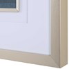 The "Rising Blue" framed artwork displays contemporary elegance and style, with abstract cobalt watercolor accentuated by double white matting and soft brushed gold finished frame. Prints are framed under protective glass and include D-Ring hardware for easy installation. Priced and sold as a pair. Artwork by Victoria Borges.