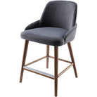 The Peregrine Bar Stool is a post modern dream. The sleek black sueded upholstery is combined with the warmth of turned wood legs. These comfy backed stools can easily be combine with even more modern pieces or with your favorite mid-century vintage find. These stools also have cross-bars for extra comfort and strength.