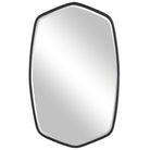 The hand-forged Duronia metal Wall Mirror features a graceful arched shape with delicate curves, finished in (3) finish options, gold, black or silver. This simple classic mirror is perfect for a small foyer or hallway or in a powder room over a vanity. Duronia has a generous 1.25 inch bevel. Hangs vertically.