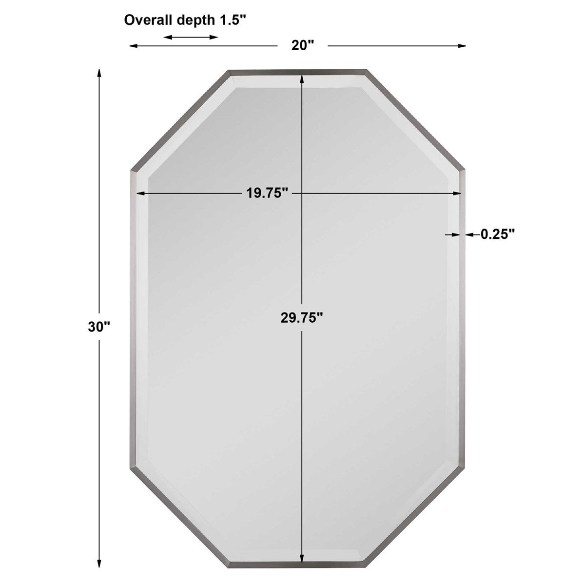 This traditional style of the Stuartson Vanity Mirror takes on a contemporary sleek look with an elongated octagon shape and petite stainless-steel frame that is finished in brushed nickel. The mirror has a generous 1 inch bevel. May be hung horizontal or vertical. Double it up for a stunning ensuite over a double vanity.