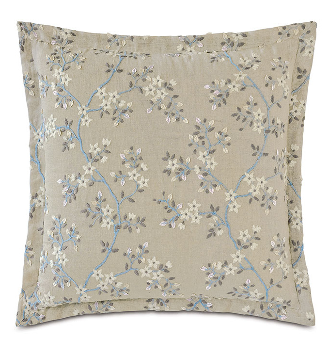 This elegant euro sham features a stunning embroidered floral design on a luxurious linen blend, bringing sophisticated artistry to your bed. It's self-backed in Greer Linen for a cohesive and refined look from every angle. Your choice of pillow insert is included.