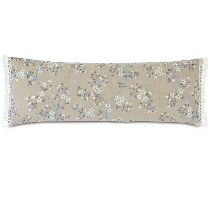 The Amberlynn Extra Long Pillow adds elegance with its embroidered floral design on soft linen blend fabric. It reverses to a subtle Greer Linen side for versatile styling. Finished with loop trim and a zipper closure, it’s easy to clean and comes with your choice of insert for comfort and style.