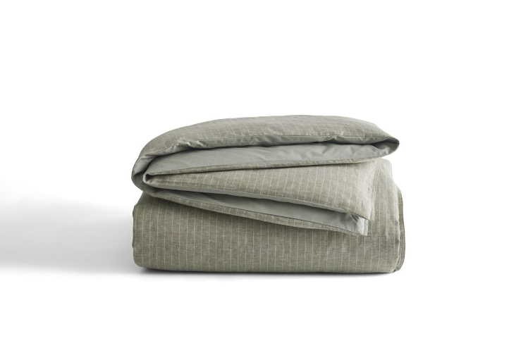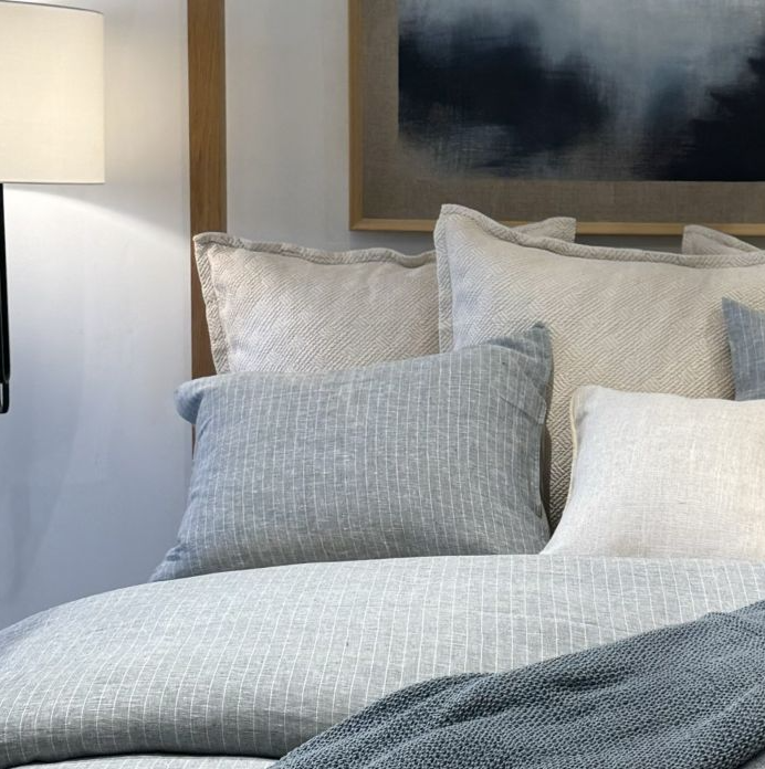Avalon Duvet Covers features delicate pinstripe linen in 4 sun-washed shades, Indigo, Olive and Sky. Duvet covers reverse to a coordinating cotton percale. Made exclusively for TL at Home in Portugal; this bedding will add a splash of charm. this bedding combines comfort and playful elegance for a dreamy sleep experience.