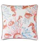 Bring the ocean’s calm into your home with this pillow featuring vibrant coral and blue underwater designs. It reverses to a clean white side with classic cord trim for a polished look. Includes your choice of insert and a zipper for easy cleaning.