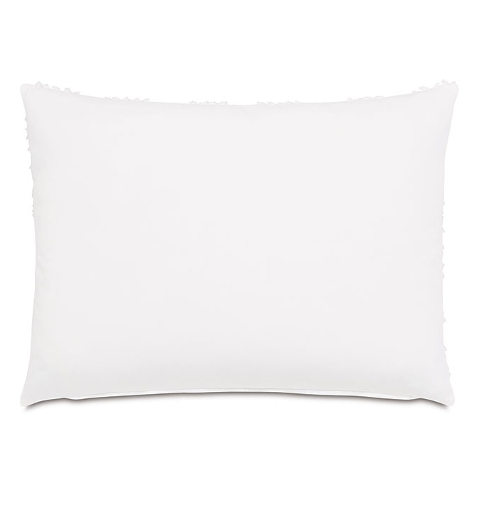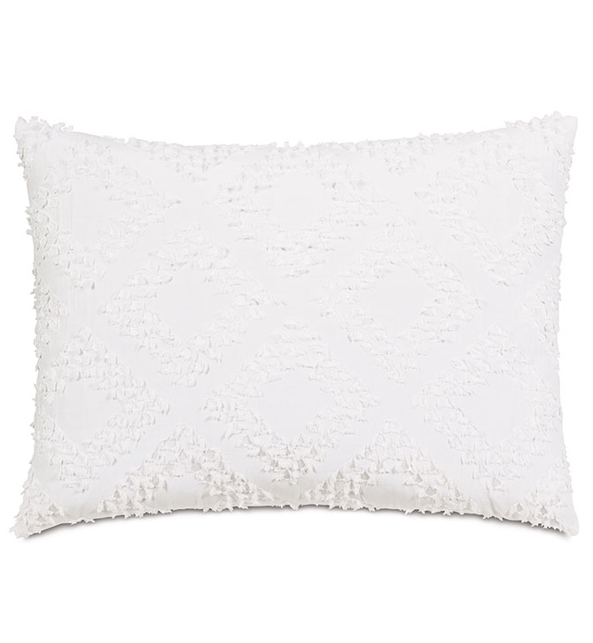 Elevate your bedding with this elegant sham featuring detailed fil coupé embroidery in a diamond pattern. It reverses to crisp white cotton for versatile looks and includes your choice of plush inserts. Finished with a tailored edge and zipper closure for easy care, it combines style and comfort effortlessly.