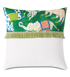 Add playful charm to any room with this decorative pillow featuring a whimsical zoo animal print and soft brush fringe. It reverses to a calming Wicking Cloud fabric for versatile style. Includes your choice of insert and a zipper closure for easy care. Spot clean or vacuum to keep it fresh.