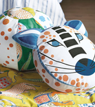 This pillow features a hand-painted tiger face and a clean, self-backed design. It includes your choice of insert and a zipper closure. To keep the paint looking fresh, gently vacuum or brush the painted areas and spot-clean unpainted parts.
