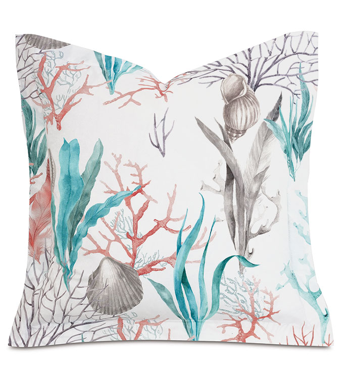 Bring the ocean’s calm into your space with this vibrant coral reef pillow. Made from soft 100% cotton percale, it features a teal-backed design with a stylish flange edge. Choose from three premium inserts for comfort, and enjoy easy care with a machine-washable cover and flap closure. Perfect for adding a fresh, coastal touch to your home.