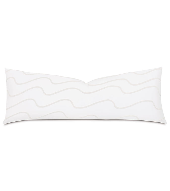 This decorative pillow features a soft 100% cotton face with a wavy opal trim design and a clean Essex White back. It includes your choice of premium inserts and a zipper closure for easy care.