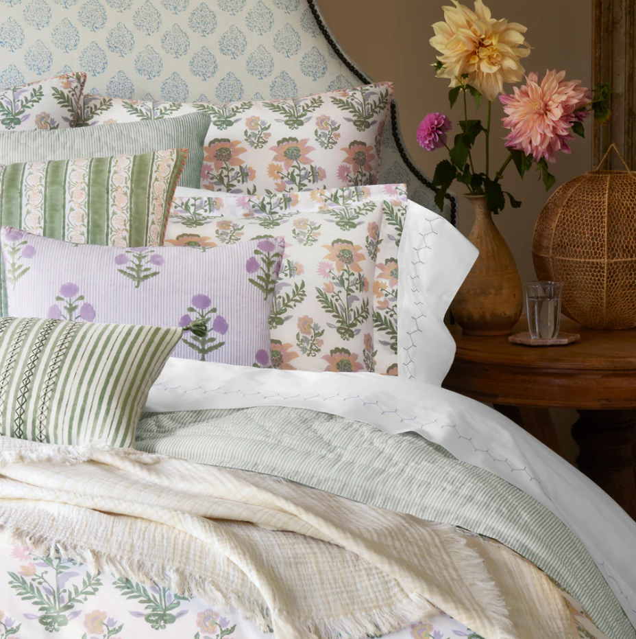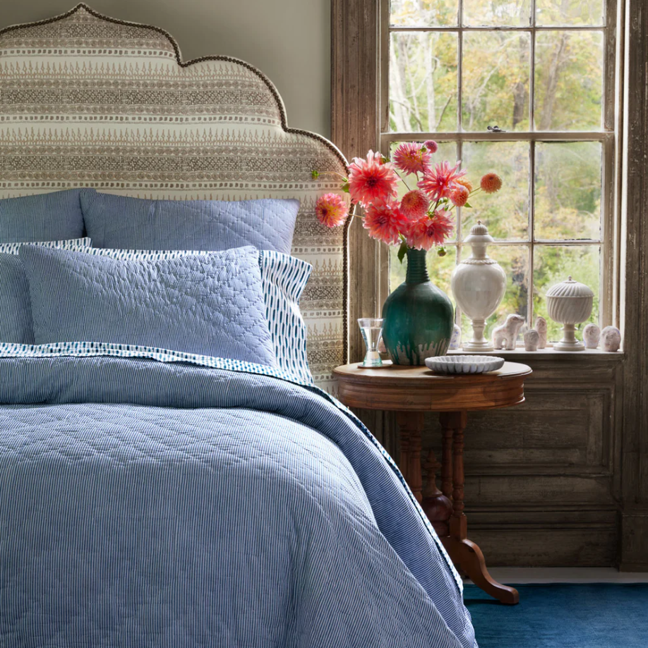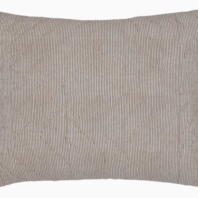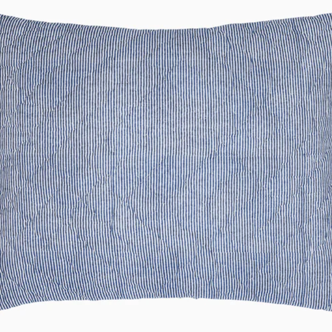 Ever since John Robshaw first became obsessed with block printing, he has been drawn to simple stripes. The lines of the Nando Quilt fade and move in a way that's similar to hand drawing. He highlights this linework in these simple, elegant quilts, paying homage to old school India. Block printed on pure cotton voile, a soft lightweight fabric with a smooth surface. Hand quilted. Sham has envelope closure, Euro has a hidden zipper. Please note there is always some color variation with block printing.
