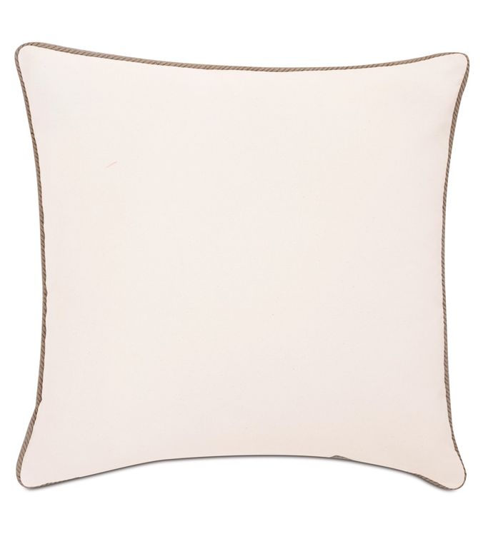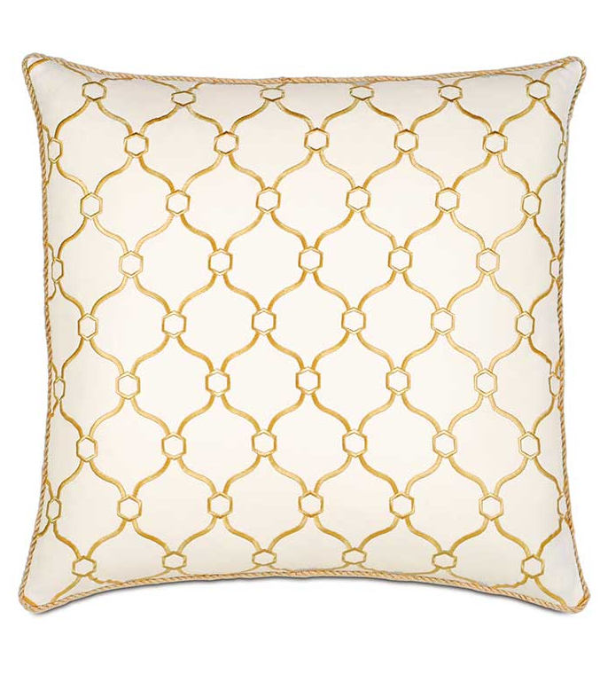 This elegant pillow showcases an embroidered trellis design with a soft cotton back in white. Finished with a classic cord edge, it includes your choice of insert and a zipper for easy cleaning. Made in the USA, it adds a refined touch to any room.