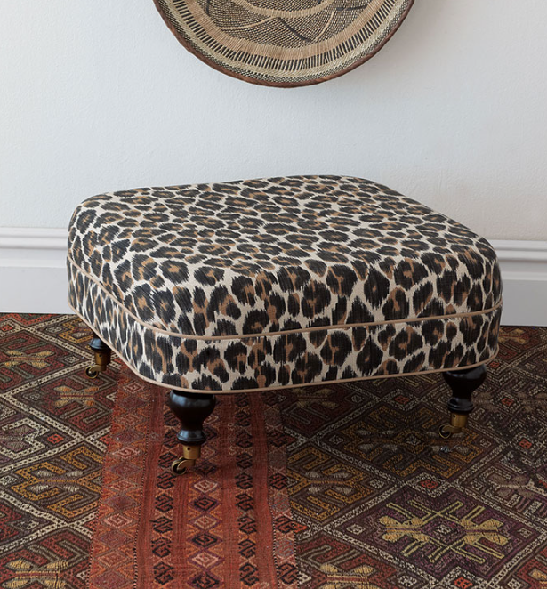 - Leopard spot cotton blend fabric on stool ottoman