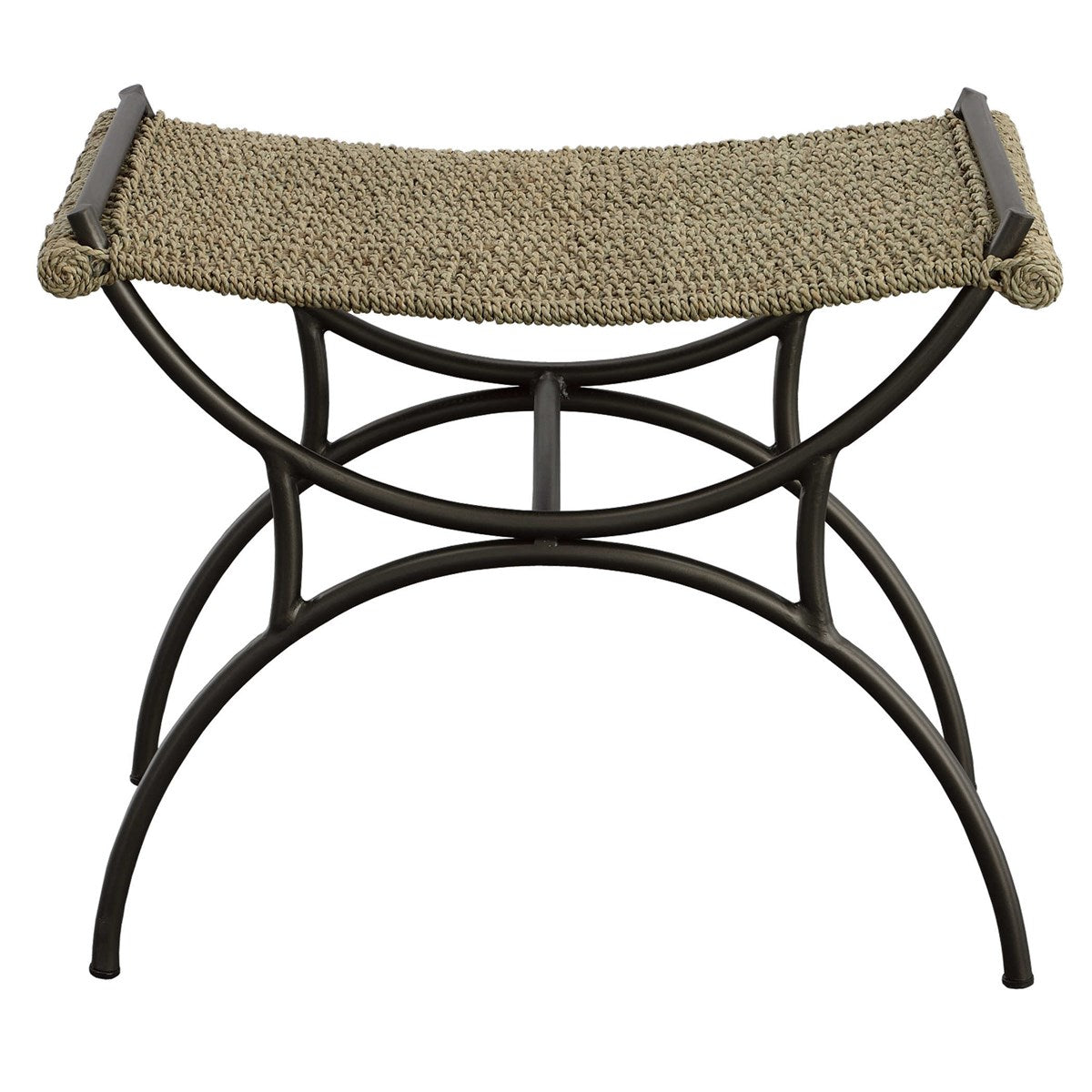 Our Playa Small Bench showcases modern organic style with a handwoven seat woven from natural seagrass and supported by an elegant, curved metal base finished in brushed gunmetal. Create the perfect spa atmosphere in a powder room or sunroom or anywhere you want a little nature.