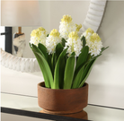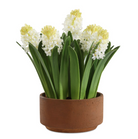 Sincerity Potted faux Hyacinth - known for ushering in the beauty of Spring, the hyacinth flower symbolizes love and prayer. The natural white blooms are paired with a terracotta finished planter.