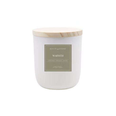 Part of the Seasonal Mountain Collection, The Warmth Candle is a clean burning soy candle available in two sizes. Perfect for gifting or creating the perfect atmosphere in your own home, these classic candles are packaged in classic white glass with wood lids.
