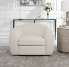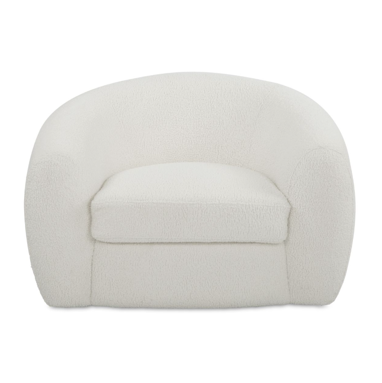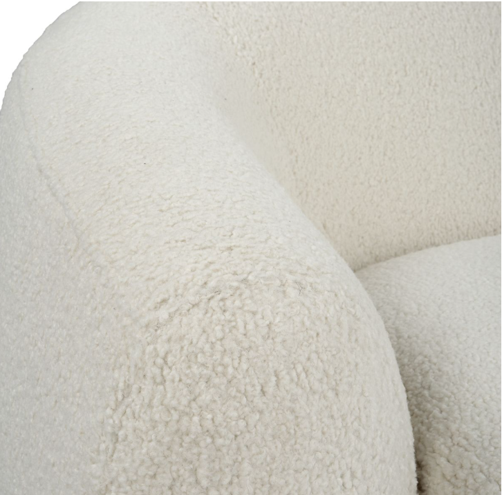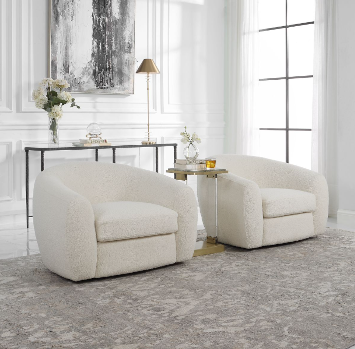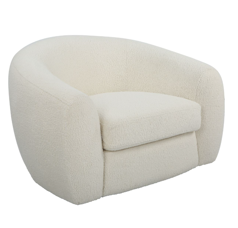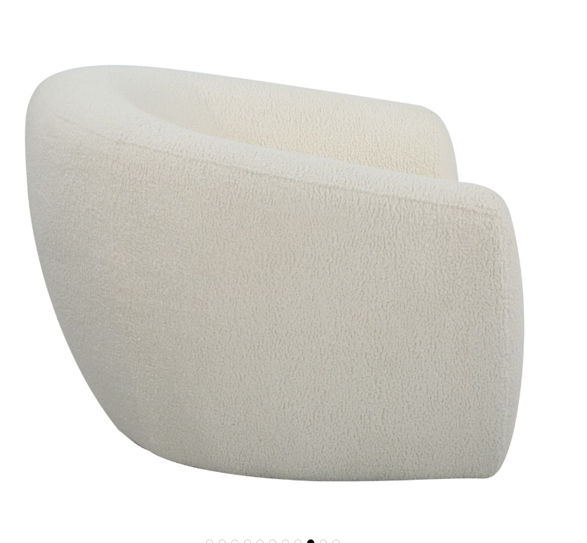 The Capra chair draws inspiration from old Hollywood glamour and the Art Deco movement with a contemporary twist. The curved silhouette maximizes style and comfort with luxe off white faux shearling and swivel base.