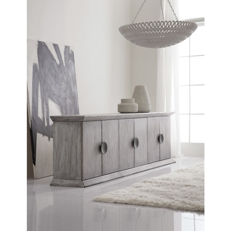 With grace and gravitas, the Koren Credenza is a striking focal point for any space. The credenza combines Elm Veneers in a lovely light natural gray finish with a concrete inset top and bold round hardware in a gunmetal color.