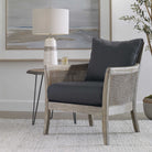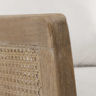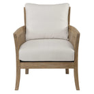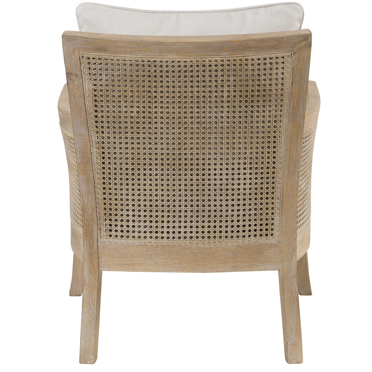 The Encore Armchair has a high supportive back and curvy flair arms make a grand style statement without being fussy. The lightly glazed and bleached hardwood is finished with cane sides creating a casual coastal style. The Encore has an upholstered seat and back cushion in a choiceof two (2) fabric options; a lush off-white fabric or dark grey fabric. This great armchair could also be used as head-chairs in a dining set with the Encore Armless chairs.