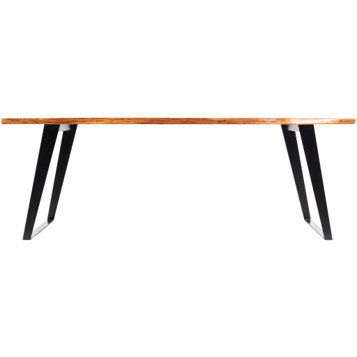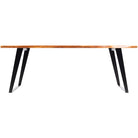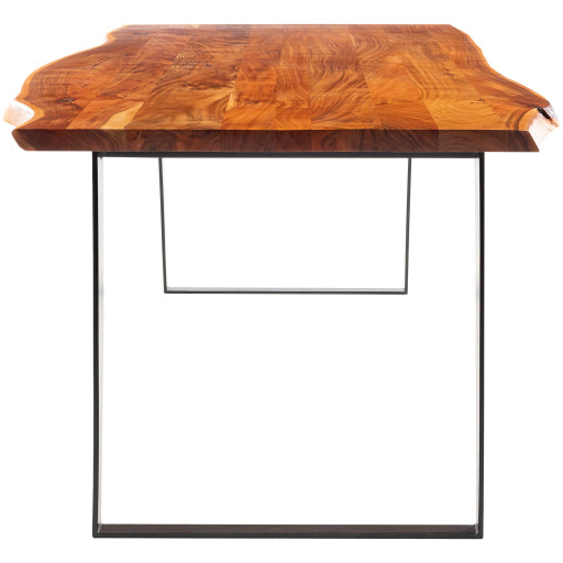 The Halden Dining Tables is a hand crafted Wood Table featuring an irregular "live edge" top finished in a natural tone that reveals the character of the boards. The table also features bLACK industrial metal legs.