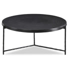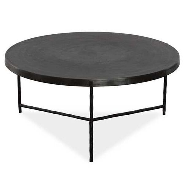 Modern textures are on display in the Trellick Coffee table. Featuring a cast aluminum top in oxidized black, resting within a chiseled black iron tripod frame. This simple table is both modern and industrial. Its striking silhouette and airy design make it perfect for adding sophistication and style to any room. Get ready to experience modern artistry in your home.