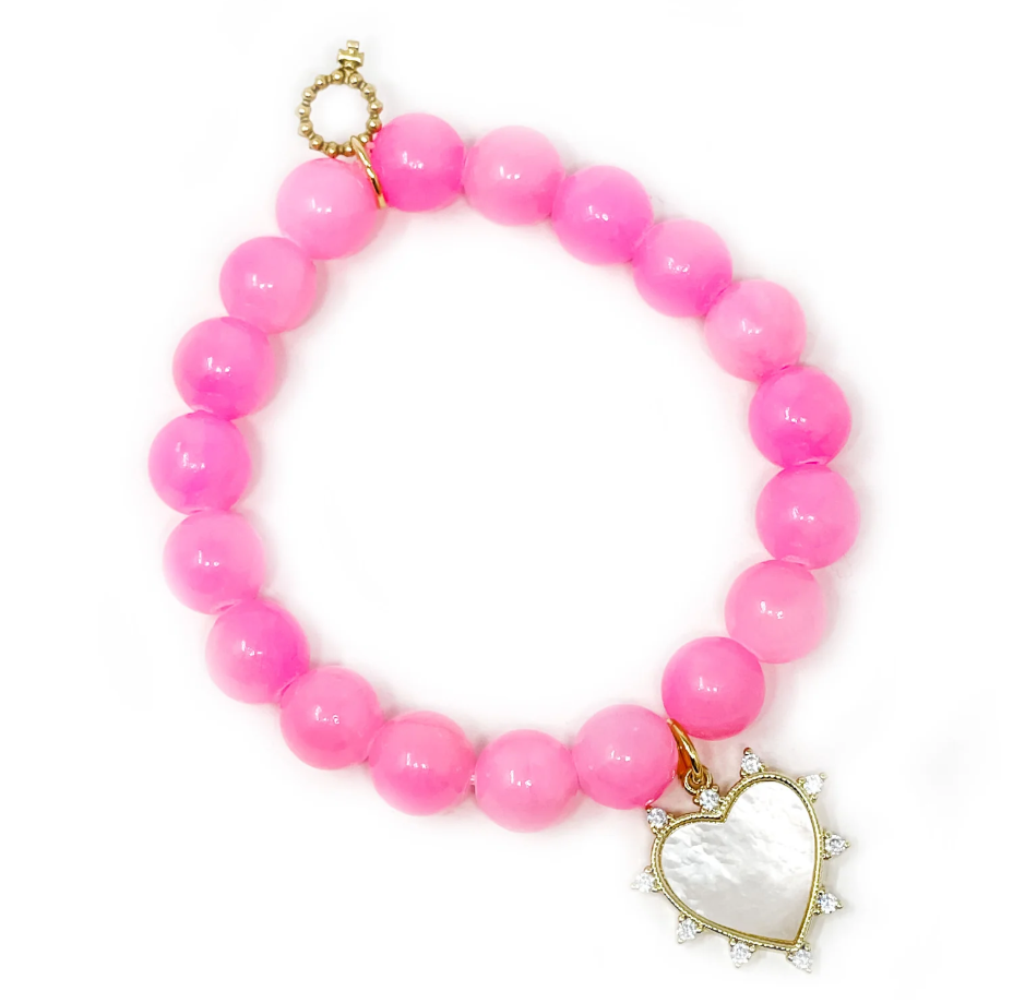 PowerBeads by Jen 10mm Faceted Bubble Gum Agate with Mother of Pearl Heart Bracelet