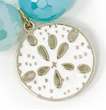 PowerBeads By Jen- Charm Bracelet Faceted Iridescent Tranquility Agate with White Enameled Sand-dollar. Every Power Beads by Jen is handmade with love in the USA.