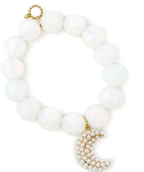 PowerBeads By Jen Charm Bracelet - Faceted White Opalite with Pearl Love you to the Moon 12mm to 14mm semi-precious gemstones. Every Power Beads by Jen is handmade with love in the USA.