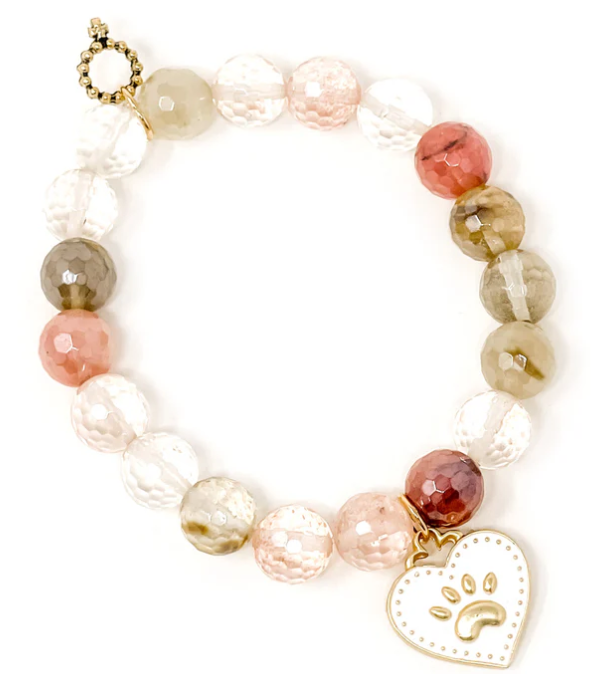 PowerBeads By Jen- Charm Bracelet Faceted Cherry Quartz with Pet Love charm. Every Power Beads by Jen is handmade with love in the USA.