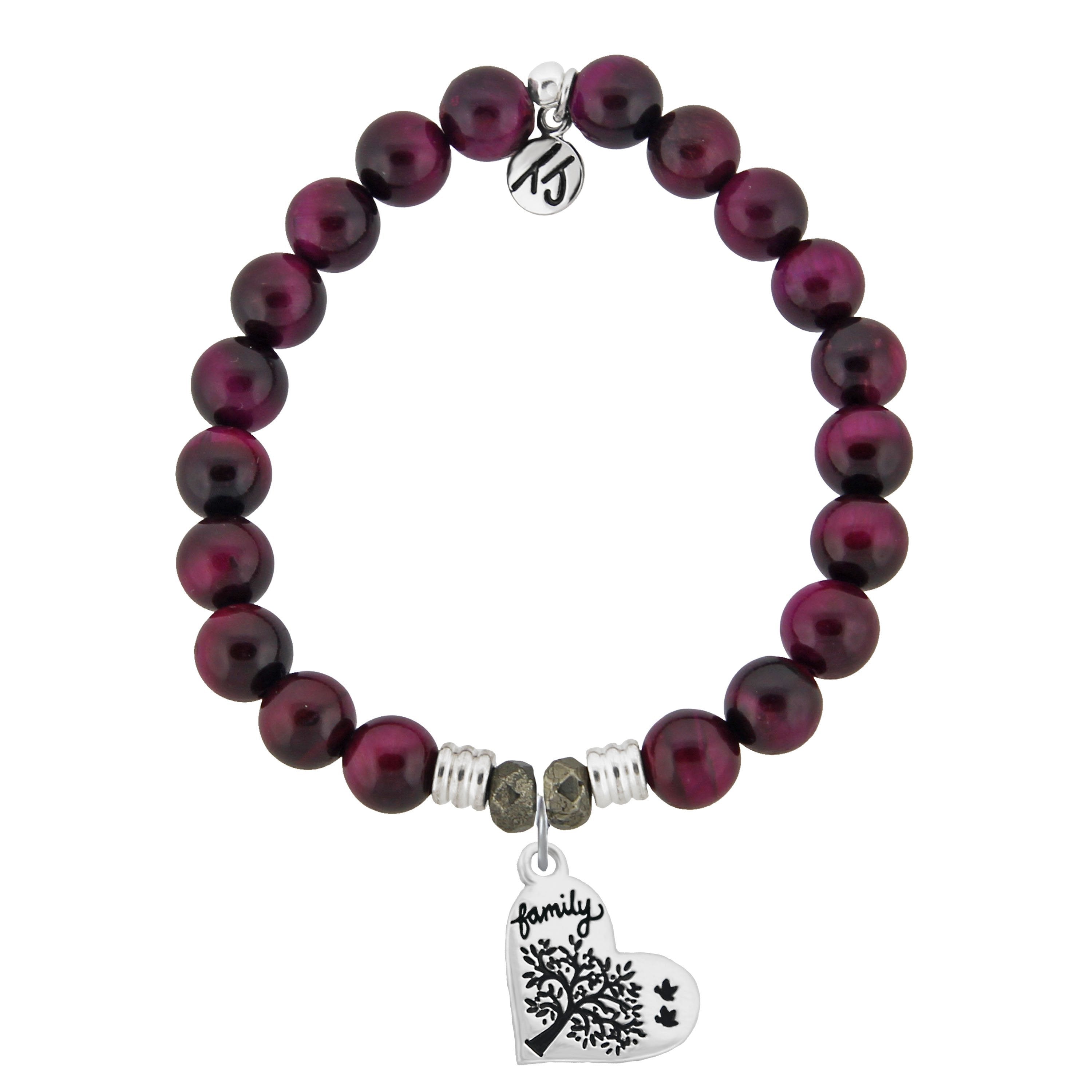T.Jazelle Pink Tigers Eye Family Tree charm Bracelet