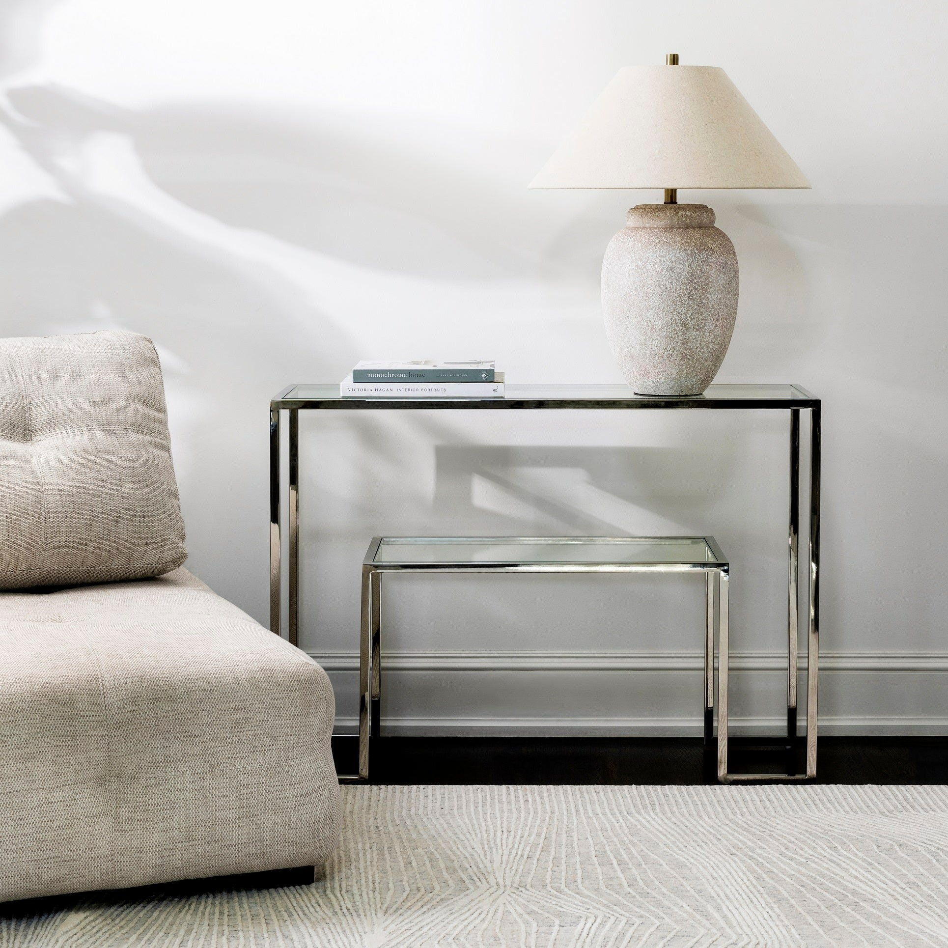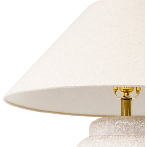 The Capelli Table Lamp in White ceramic and has an updated modern shape that exudes sophistication and refinement with its unique contemporary design and high-quality materials of linen, polished white-glazed ceramic, and a metallic brass finial, creating sophistication and refinement. Elevate your home decor with this must-have statement piece.