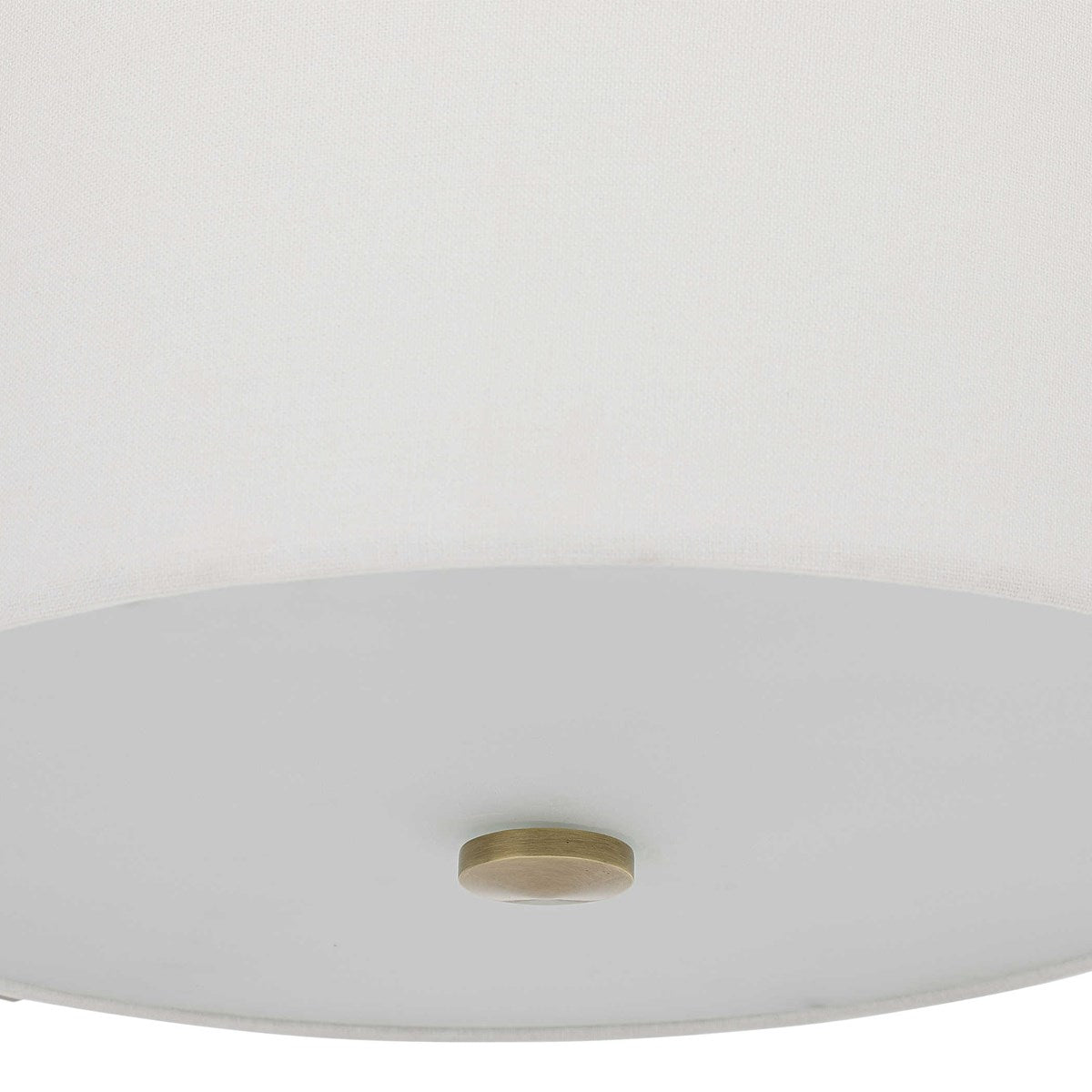 The Colfax Semi-Flush ceiling light is chic and versatile. This transitional, modern form has 3 lights and is a semi-flush mounted fixture featuring an antique brass finish with and off-white linen shade and central frosted glass diffuser. 3-100 watt sockets.