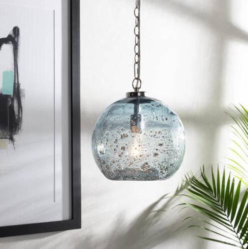 Our Mist Pendant offers an enduring presentation of the modern form that will competently revitalize your decor space. Expertly crafted and unique blue bubble glass is hand finished to perfection ensuring quality, helping to make these pieces a mainstay in your home. Crafted in India from Glass, Steel, Steel For optimal product care, wipe clean with a dry cloth as needed