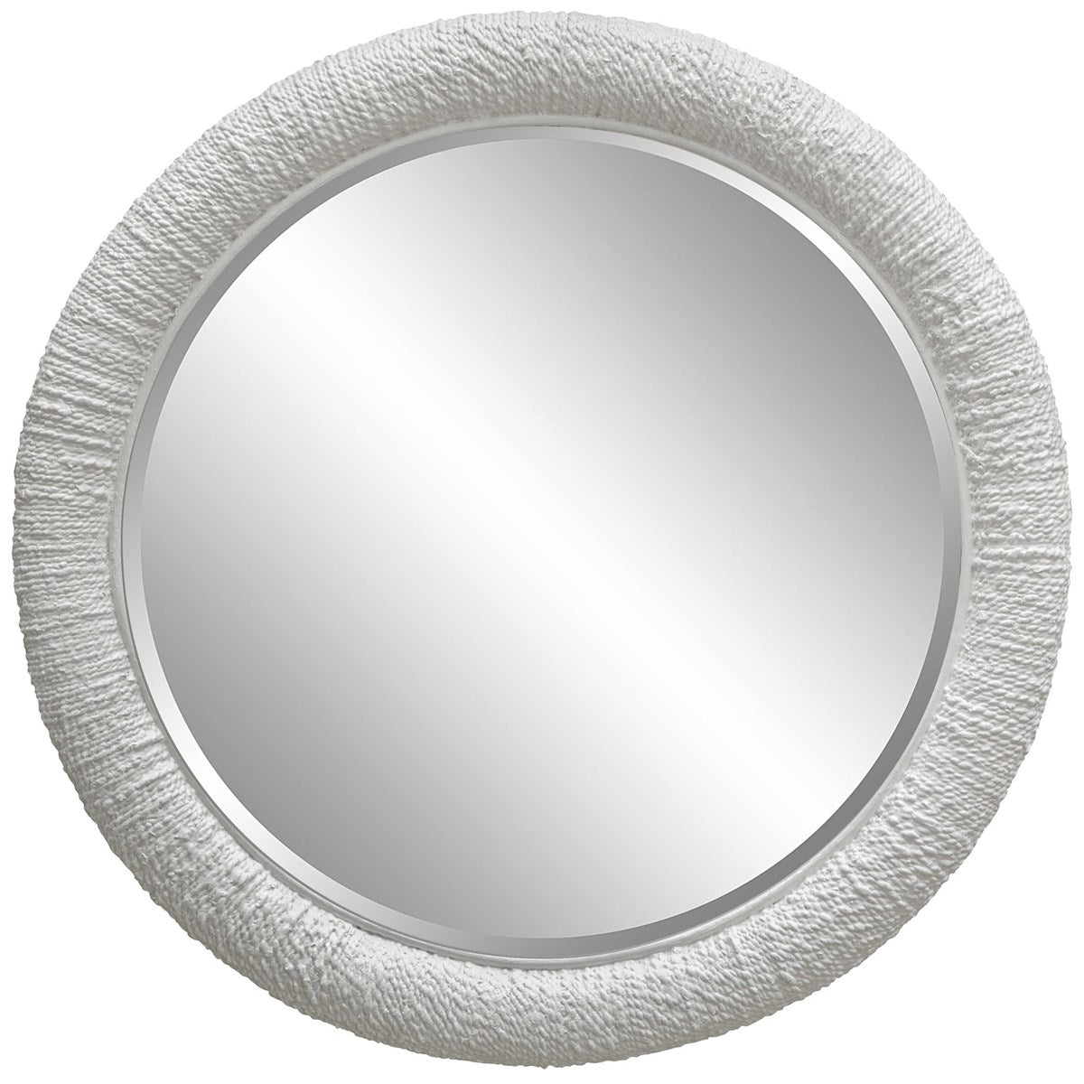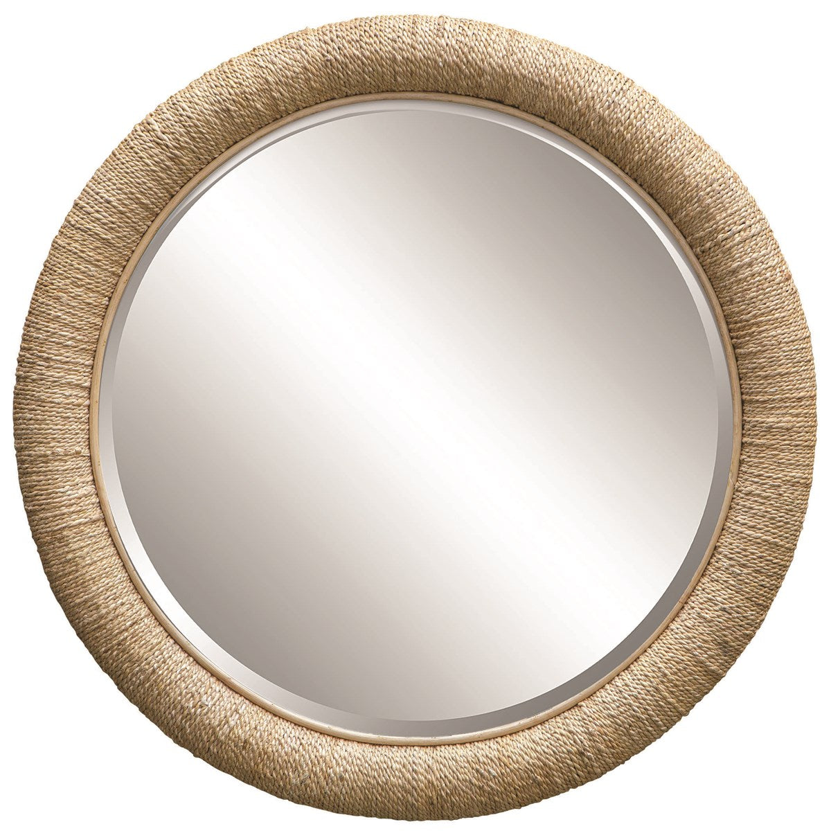 Inspired by natural surroundings, the "Mariner" coastal round mirror is the perfect addition to any seaside or mountain retreat. The rounded frame is made of natural woven banana plant accented by a rattan inner edge. Mirror has a generous 1.5"- inch bevel. Available in two color ways Natural or White.