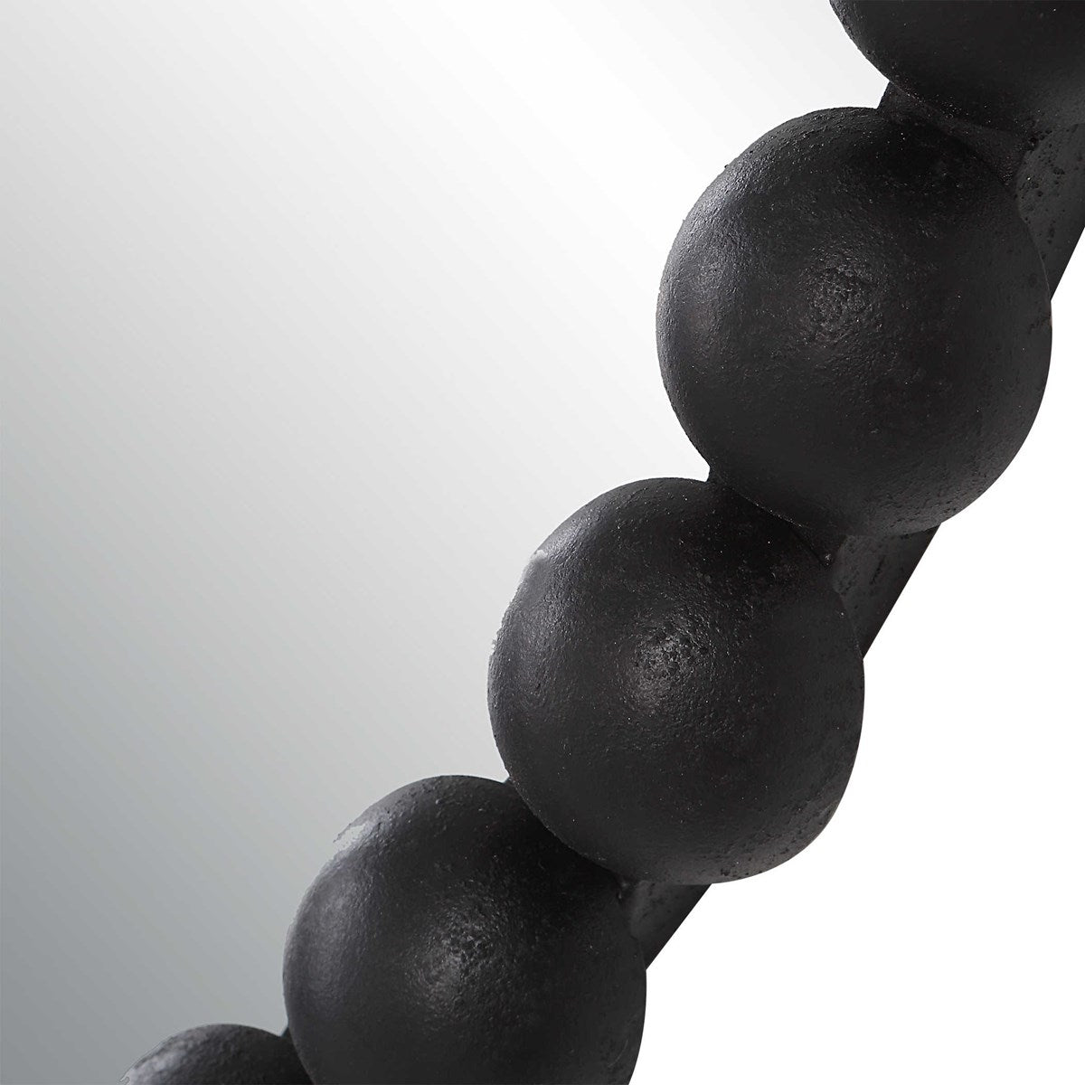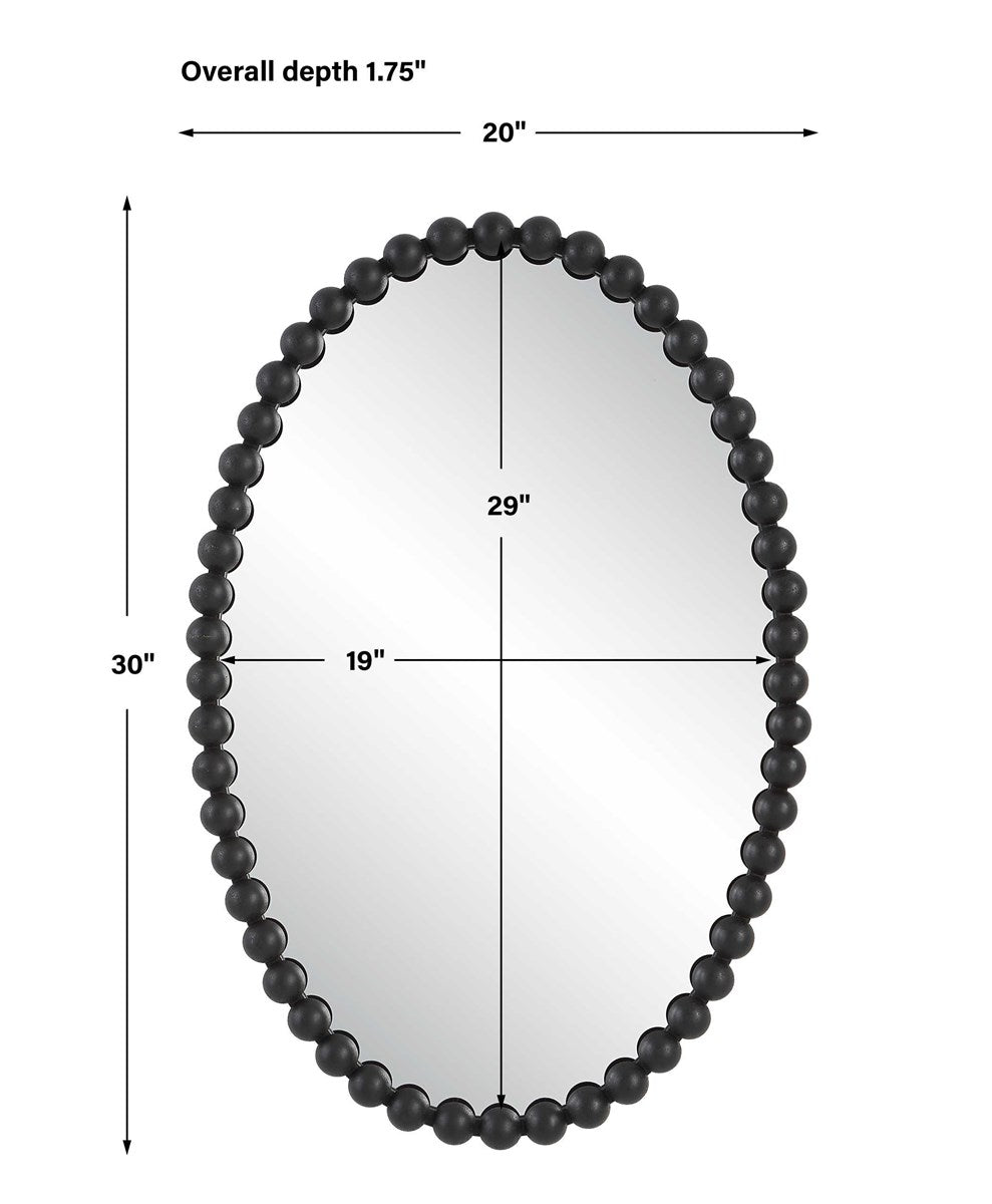 The Serna Oval wall Mirror features an elegant, curved iron frame with a beaded profile remeniscent of classic furniture with an updated style. Serena is finished in a white, gold or matte black. May be hung horizontal or vertical.