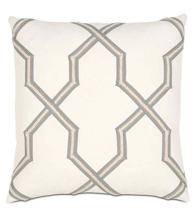 The decorative Adler pillow features a delicate trim forming a stylish trellis pattern. Made in100% cotton, the Adler Natural fabric and a clean knife-edge finish, offers a smooth, unified, classic look. Proudly made in the USA, it includes your choice of insert and a zipper for easy cleaning.