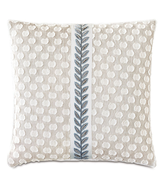 The Amberlynn Applique Pillow adds elegant texture and detail to any space. Featuring a sophisticated cut-thread pattern with embroidered trim, it reverses to a clean, contrasting design. Finished with a delicate fringe and a zipper for easy cleaning.