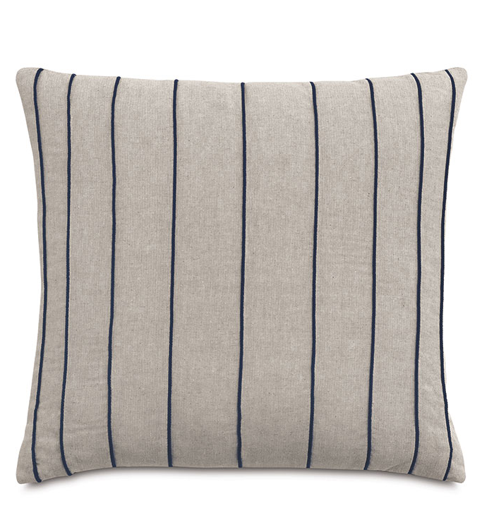 Understated and tailored, this 20x20 decorative pillow features subtle channel detailing in Greer Linen, accented with a delicate cord for added texture and refinement. Self-backed in the same fabric for a seamless look, and finished with a clean knife edge and hidden zipper closure for easy use. Made to Order- 4-6 weeks