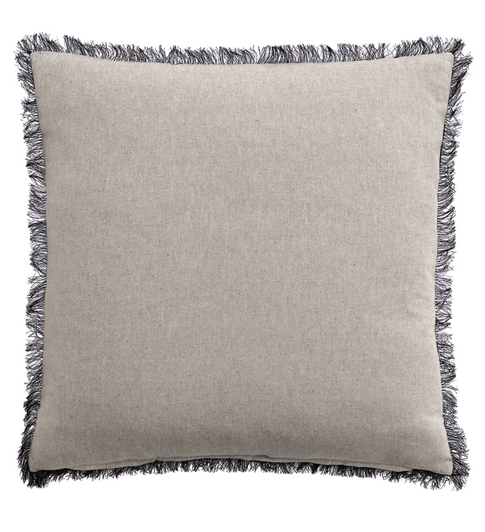 Add texture and refinement to your space with this decorative pillow, featuring beautifully detailed embroidery and a soft fringe trim that brings a touch of elegance. The reverse is finished in Greer Linen, offering a clean, neutral backdrop. Complete with a hidden zipper for easy use and your choice of premium pillow insert. Made to Order- 4-6 weeks