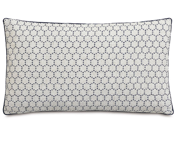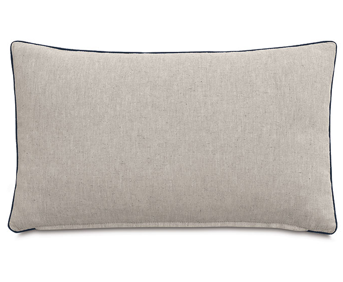 This decorative pillow features intricate embroidery in Abella Navy, bringing a refined pop of color and texture to your space. The reverse is crafted from Greer Linen for a clean, neutral contrast, while a small cord trim adds a tailored finishing touch. Complete with a hidden zipper for easy use and your choice of premium pillow insert. Made to Order- 4-6 weeks