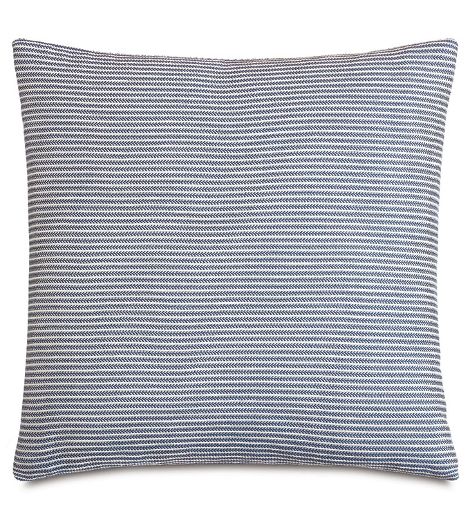 A versatile statement piece, this reversible decorative pillow features bold horizontal stripes on one side and vertical stripes on the other, offering two distinct looks in one. Crafted in the richly woven Osiris Lake fabric and self-backed for a cohesive finish. Detailed with a clean knife edge and a hidden zipper closure for easy use. Includes your choice of premium pillow insert. Made to Order- 4-6 weeks