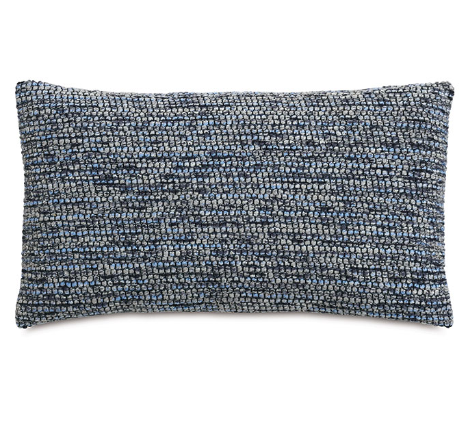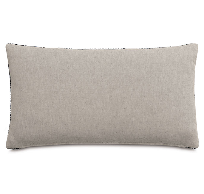 This decorative lumbar pillow features the richly textured Bioko Ocean fabric, offering a bold yet refined touch in deep, moody blue tones. The reverse is finished in Greer Linen for a soft, neutral balance. A clean knife edge and hidden zipper closure complete the look. Made to Order- 4-6 weeks