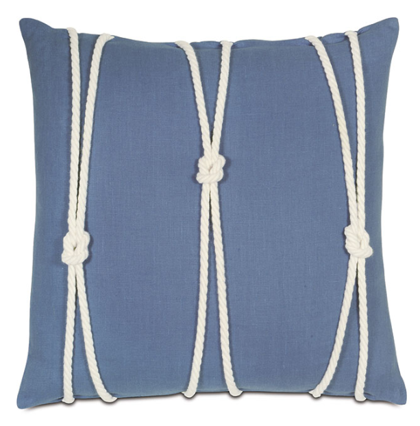 This pillow combines soft linen with subtle rope details for a stylish nautical touch. It features a matching Breeze Sapphire back, a neat knife edge, and a zipper closure for easy cleaning. Includes your choice of insert for comfort and style.