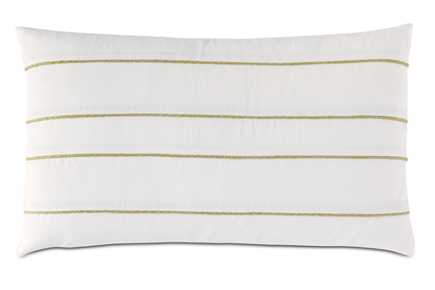 This decorative pillow features a clean white fabric with a subtle cord trim for added texture. Made with 100% cotton backing and a sharp knife edge, it includes your choice of insert and a zipper closure for easy care.