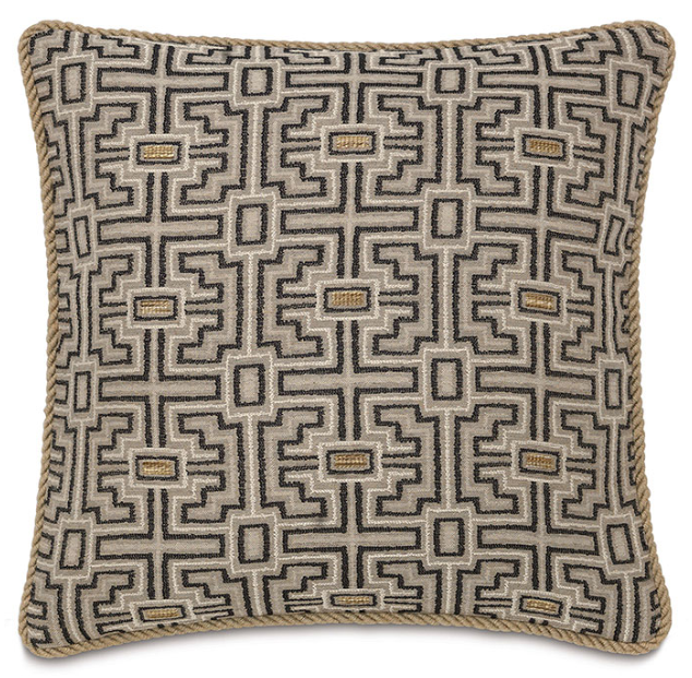 Add style and versatility to your space with the Naya Maori Square Pillow. Featuring a modern geometric design on one side and a soft Vivo Bisque reverse, it’s framed with a classic cord trim. Includes your choice of insert and a zipper for easy cleaning.