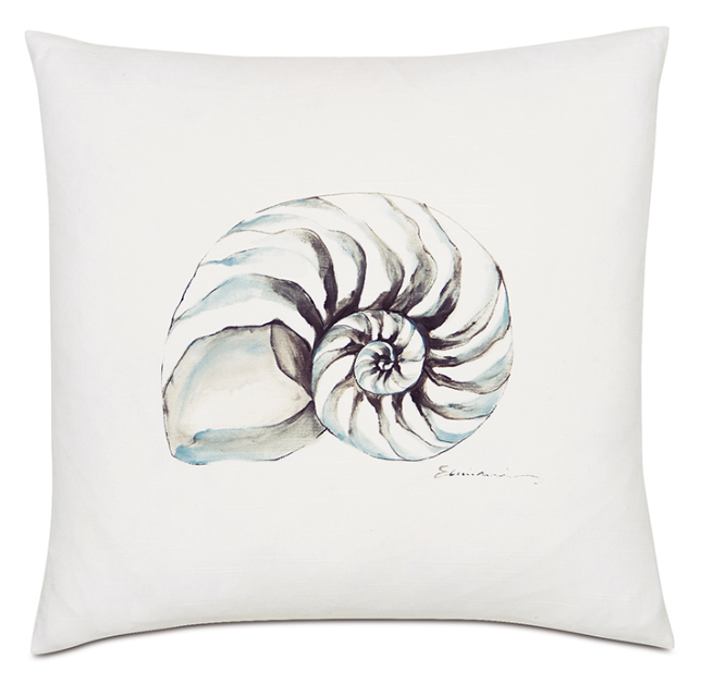 This decorative pillow features a hand-painted conch design on soft cotton fabric. It includes a pillow insert and zipper closure for easy care. Each pillow is unique due to its handcrafted details. Spot clean only to keep it looking its best.