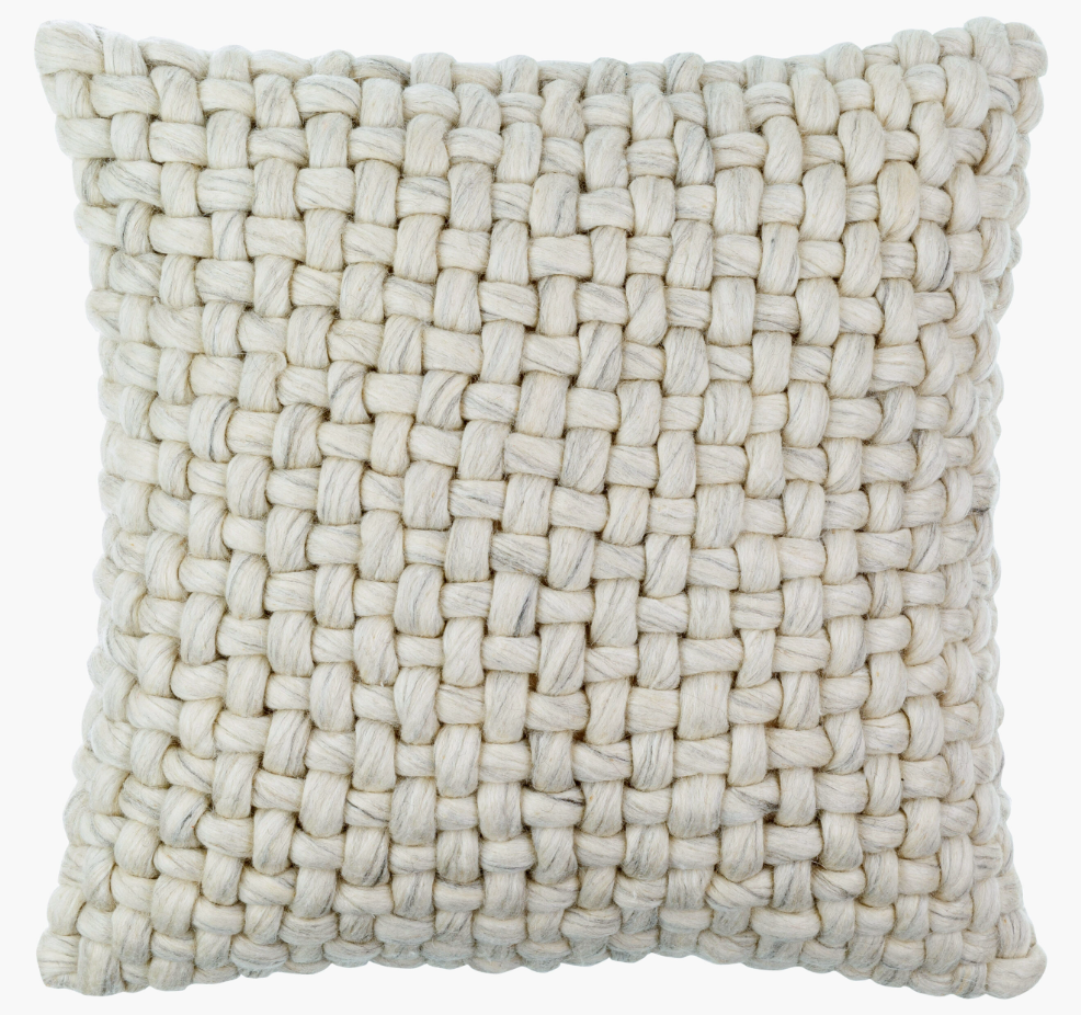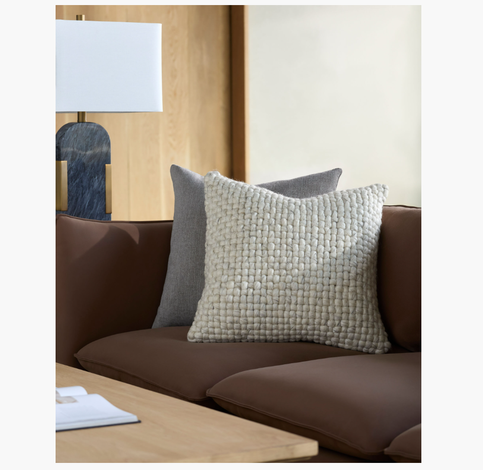 Add personality to your living space with our set of Pansy Pillows! Measuring 22 x 22 inches and hand-woven with a front of 100% wool and a back of 100% cotton, these pillow includes down inserts for maximum comfort. Zipper closure makes it easy to remove for cleaning. Available in either taupe or ivory, this quirky and playful pillow is sold in sets of 2 of the same color.
